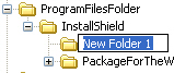 Folders are listed in the column on the left, and all of the files in the selected folder are listed on the right. Blue folders are the supported MSI standard folders. The folder with the check mark is INSTALLDIR, which represents the main product installation directory.