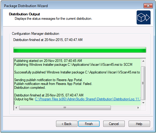 For all distribution types, the Package Distribution Wizard will create a Distribution log file in the Distribution folder of the AdminStudio Shared directory.