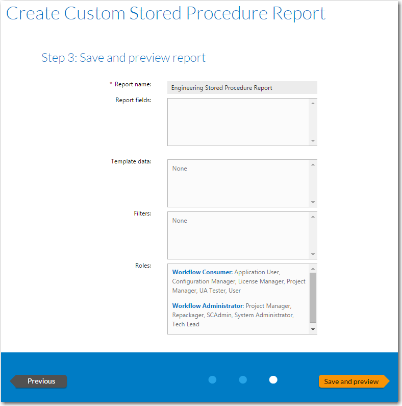 You have the option of generating an AdminStudio Enterprise Server report using a stored procedure. A Custom Stored Procedure Report is a report on data generated by AdminStudio that is defined by specifying a stored procedure.