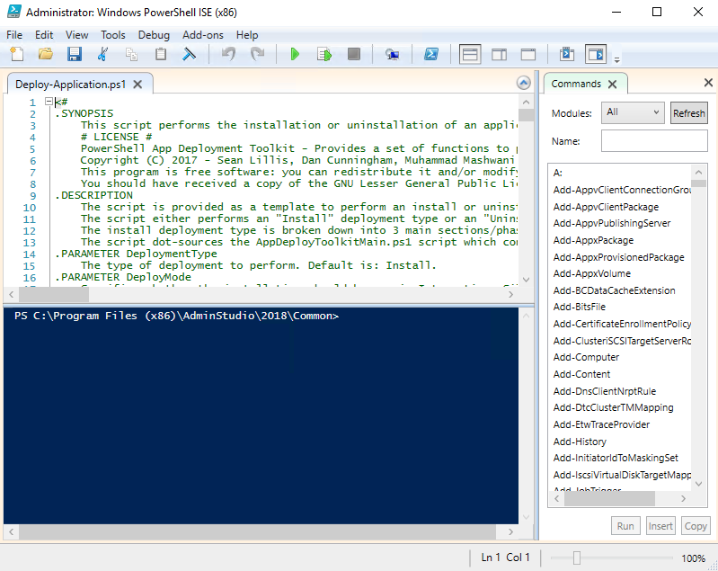 You can edit the PowerShell-wrapped package script (.ps1 file) using the Windows PowerShell ISE application. If you selected the Edit script on wrapping option on the PowerShell Wrapping Options panel of the Wrap Package Wizard, the script file opens in the Windows PowerShell ISE application immediately after you close the wizard.