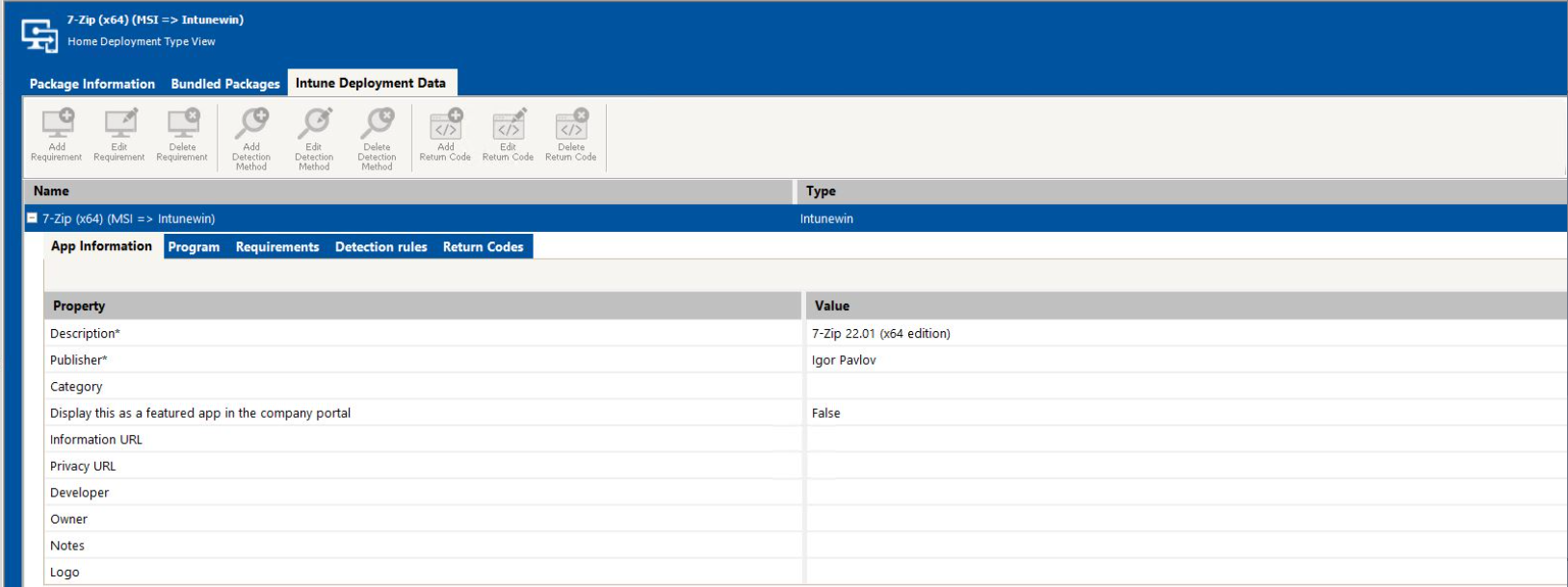 - Click the Intune Deployment Data tab and open the App Information subtab.