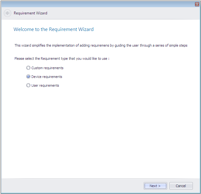 | Device requirements | Select this option if you want to define a device requirement (such as CPU speed, free disk space, operating system, etc.) that the target system needs to be meet in order for ConfigMgr (Formerly called as System Center Configuration Manager) to be able to successfully deploy this package. |