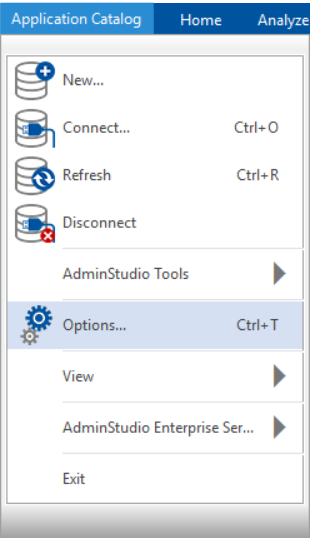 1. On the Application Catalog tab menu, select Options. The Options dialog box opens. ![](/images/Application Catalog_select options_8.png)