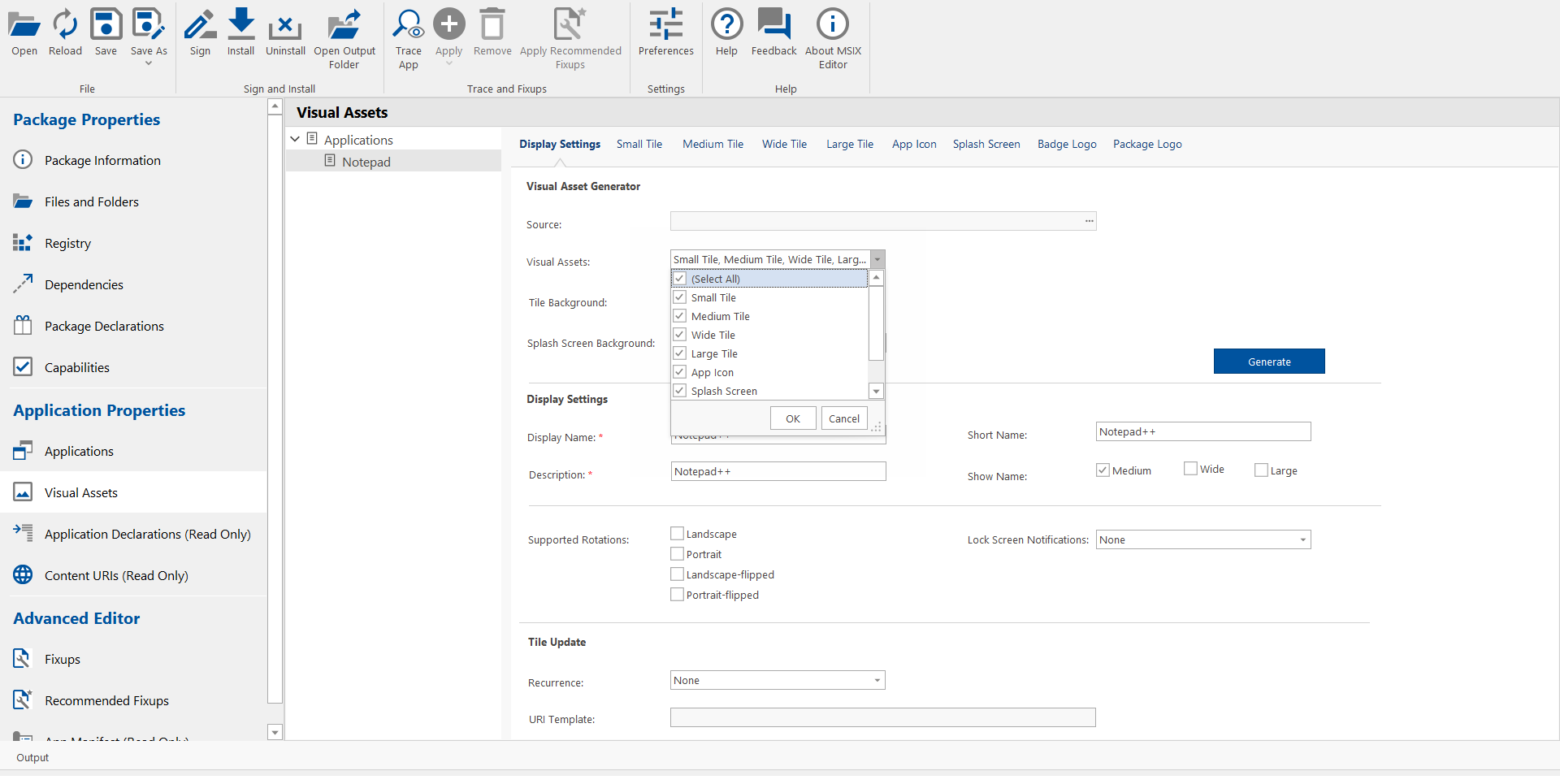 1. Click on Visual Assets view in the left pane under Application Properties.